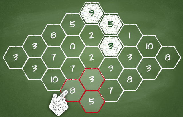 New tiles with random numbers will fall from the top. Notice the white fill of these new tiles.